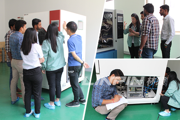 印度代理商此前曾兩次考察林頻,并順利簽訂合作代理協(xié)議。此次來訪旨在進(jìn)一步了解我司的實(shí)力并安排其技術(shù)人員進(jìn)行環(huán)境試驗(yàn)設(shè)備的安裝調(diào)試專業(yè)培訓(xùn),代理商先后參觀了我司的研發(fā)部、PLC部、電工部、制冷部、國(guó)際貿(mào)易部、生產(chǎn)車間等,對(duì)設(shè)備生產(chǎn)的各個(gè)環(huán)節(jié)從數(shù)據(jù)核算、模型推演、工程制圖、下料加工到設(shè)備調(diào)試,再到包裝出貨都進(jìn)行了詳細(xì)的了解。在為期三天的安裝調(diào)試專業(yè)培訓(xùn)過程中,印度代理商對(duì)林頻所具備的技術(shù)力量、生產(chǎn)能力給予高度評(píng)價(jià),同時(shí),對(duì)我司高端智能化裝備充滿興趣,對(duì)產(chǎn)品質(zhì)量贊不絕口。